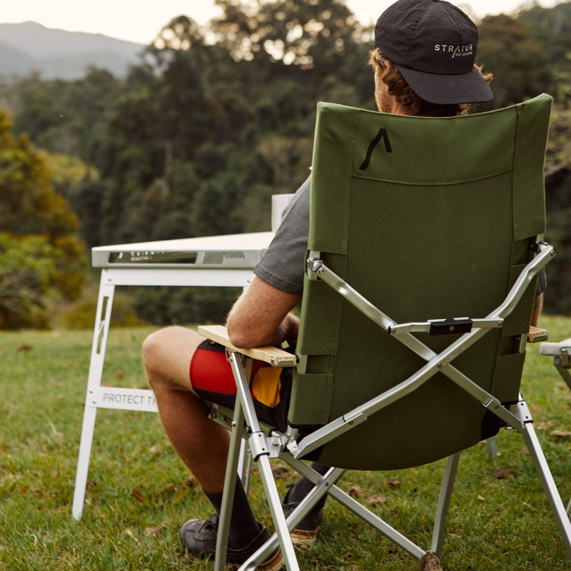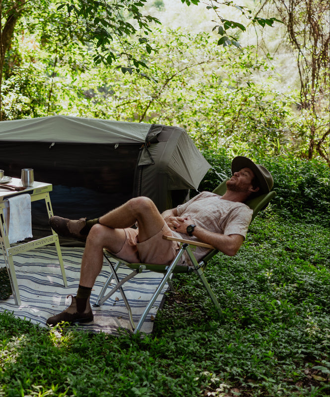 A camp chair made of 60 post consumer plastic bottles, strong, good looking and built to last generations. Activate the recline and feel suitably smug about your choices.