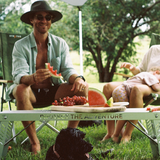 Multi purpose with a simple flat fold design. Use him as a seat, a step up, a coffee table, a foot rest, a cooking buddy to keep your camp fire feast out of the dirt ... whatever you need - Barry is your bloke.