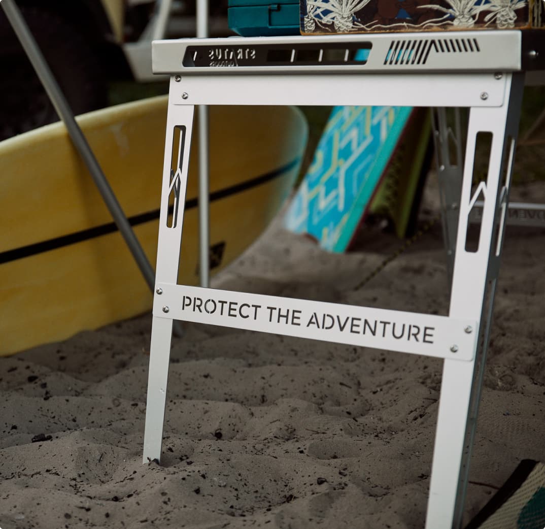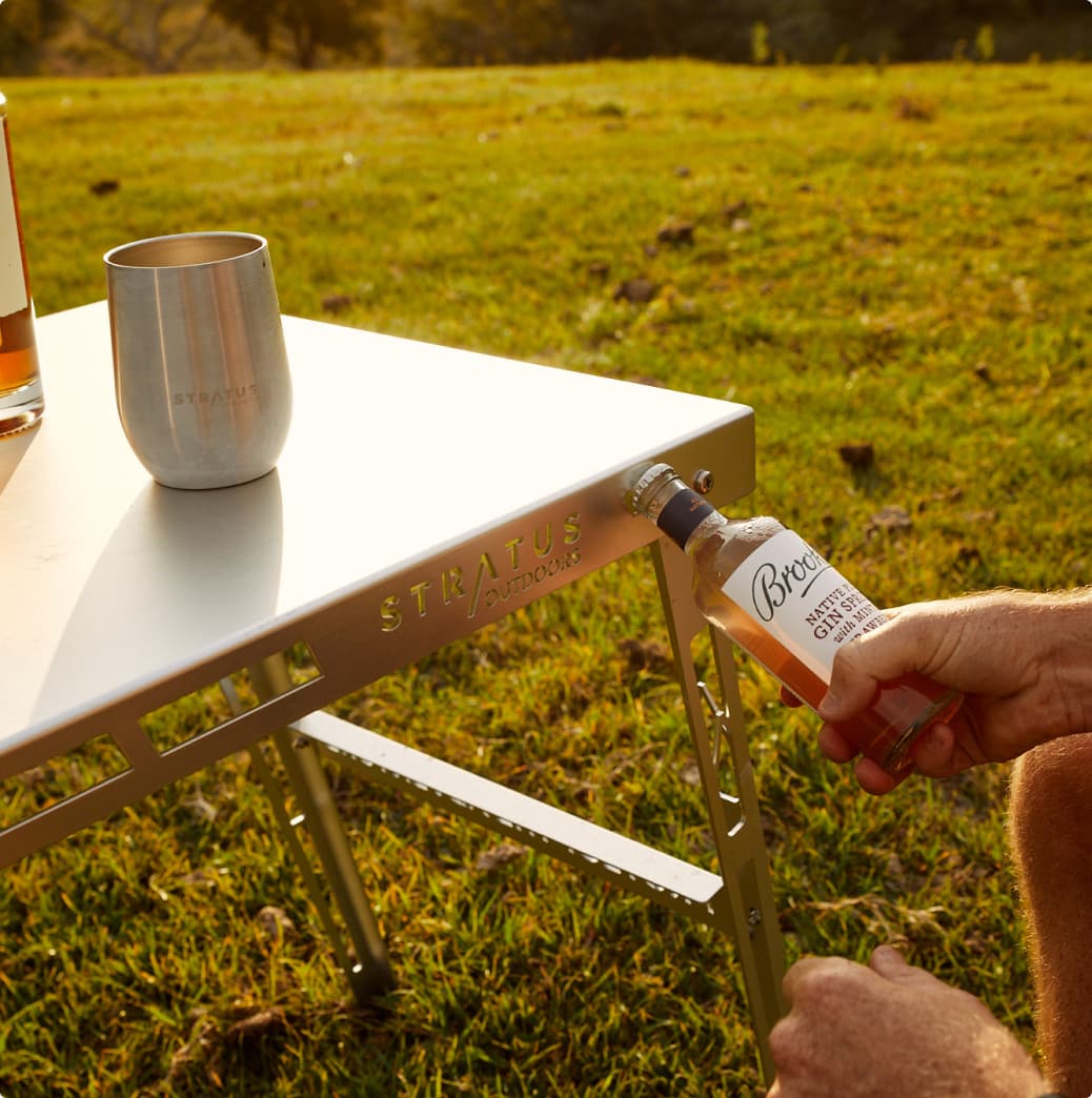 Inspired by the original Stratus Outdoors, tough adventure vehicle “Derek”, a 2006 Land Rover Defender. This light weight alloy table is made of brushed 3mm Aluminium and stainless steel fixings. The ocean spray isn’t going to worry Derek, in fact not much will worry this tough guy.