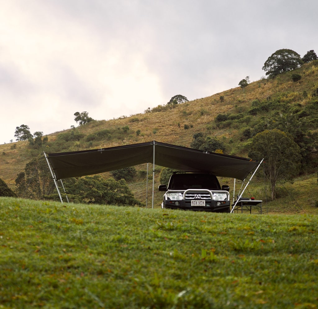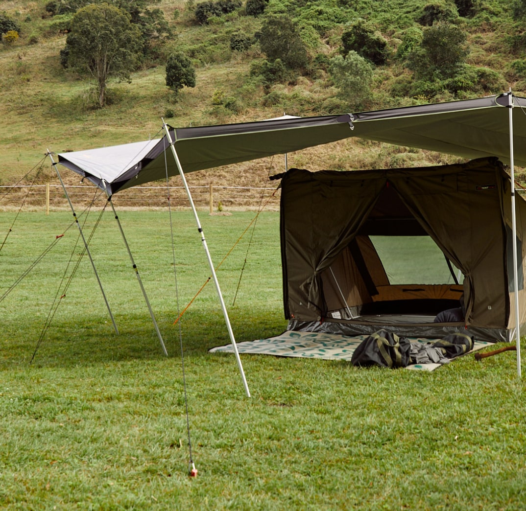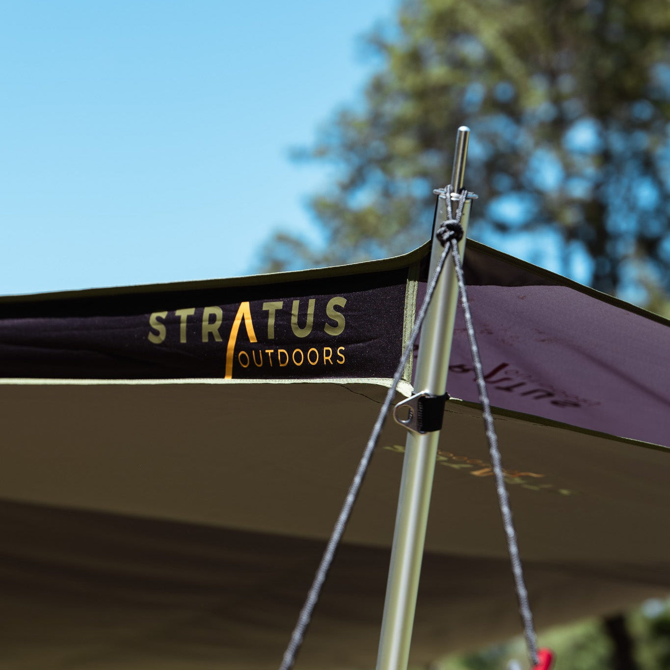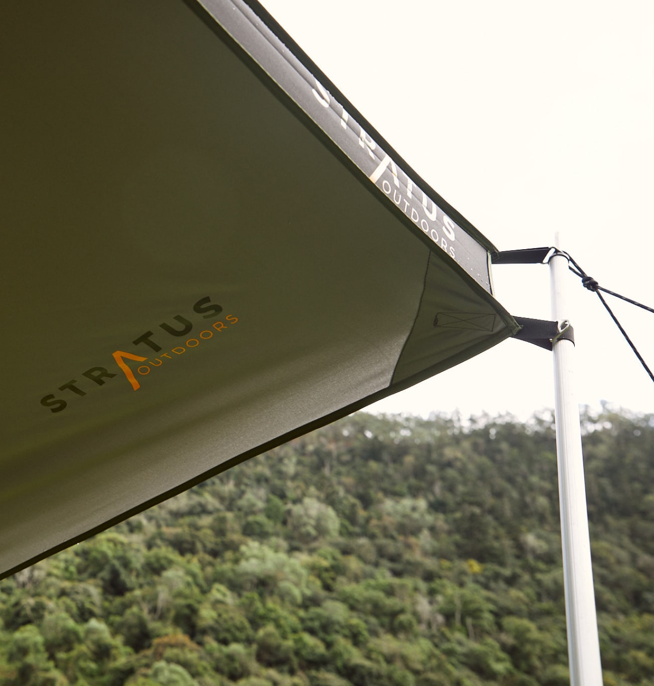 The Stratus Outdoors patented design is comprised of interconnected shade layers that create an internal ‘Cool Flow Cell’ system. This world first technology captures the radiant heat from the top of the shade and contains it within the cool flow cells. Both ventilation and wind then allow hot air to be circulated out of the shade through vents located along its sides. Any radiant heat transferred to the campsite below is greatly reduced providing a much more enjoyable environment underneath!