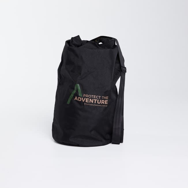 Our Roll Top Utility bag - made of durable 1680D Oxford RPET fabric with a 3000mm waterproof coating. Great for keeping your gear high and dry, for throwing your wetsuit and towel in, or using as a ‘Protect the Adventure’ rubbish bag at your campsite, so you leave no trace.