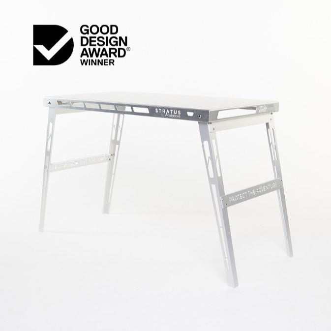 1 x The Derek Camp Table - Strong, lightweight and reliable for multiple uses. The Derek alloy table is made of brushed 3mm Aluminium and stainless steel fixings. Prep’ your campfire meal, store your adventure gear high and dry, or fillet your catch of the day.